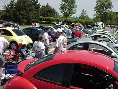Some of the many New Beetles in Auburn Hills 2001 when they allowed us to participate.