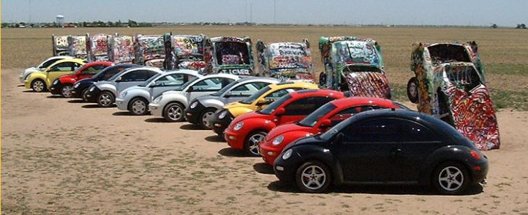 On our way to Roswell, NM in 2000, we stopped at the Cadillac Ranch, Amarillo, TX. Peanut is the first