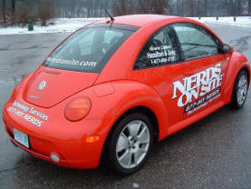 Started working for Nerds On Site... they use red New Beetles (Nerdmobiles)! How cool is that?