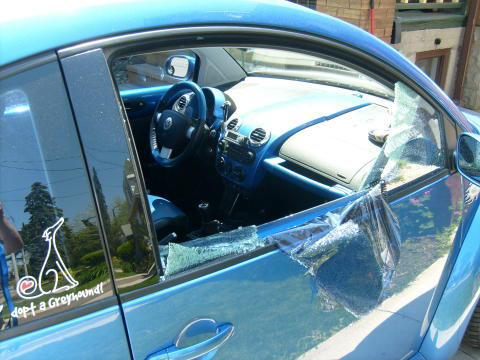 Some asshole smashes Sweetie's window and grabs my GPS and